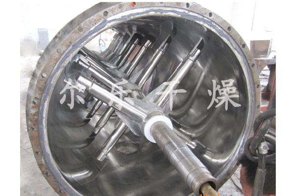 真空耙式干燥機是一種新穎臥式間歇式真空干燥設備,濕物料經(jīng)傳導蒸發(fā),帶有刮板攪拌器不斷清除熱面上的物料,并在容器內推移形成循環(huán)流,水份蒸發(fā)后由真空泵抽出。