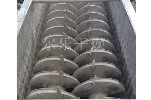 空心軸上密集排列著(zhù)楔型中空漿葉,熱介質(zhì)經(jīng)空心軸流經(jīng)漿葉。單位有效容積內傳熱面積很大,熱介質(zhì)溫度從-40℃到320℃,可以是水蒸汽,也可以是液體型:如熱水、導熱油等。間接傳導加熱,沒(méi)有攜帶空氣帶走熱量,熱量均用來(lái)加熱物料。熱量損失僅為通過(guò)器體保溫層向環(huán)境的散熱。楔型漿葉傳熱面具有自清潔功能。物料顆粒與楔型面的相對運動(dòng)產(chǎn)生洗刷作用,能夠洗刷掉楔型面上附著(zhù)物料,使運轉中一直保持著(zhù)清潔的傳熱面。漿葉干燥機的殼體為Ω型,殼體內一般安排二到四根空心攪拌軸。殼體有密封端蓋與上蓋,防止物料粉塵外泄而充分發(fā)揮作用。