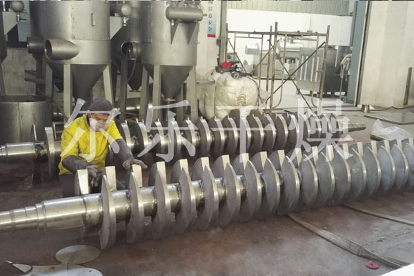 漿葉干燥機已成功地用于食品、化工、石化、染料、工業(yè)污泥等領(lǐng)域。設備傳熱、冷卻、攪拌的特性使之可以完成以下單元操作:燃燒(低溫)、冷卻、干燥(溶劑回收)加熱(融化)、反應和滅菌。攪拌漿葉同時(shí)又是傳熱面,使單位有效容積內傳熱面積增大,縮短了處理時(shí)間。楔型漿葉傳熱面又具有自清潔功能。壓縮--膨脹攪拌功能使物料混和均勻。物料沿軸向成'活塞流'運動(dòng),在軸向區間內,物料的溫度、濕度、混合度梯度很小。用導熱油做熱介質(zhì)漿葉干燥機可完成低溫燃燒工作。如:二水硫酸鈣(Ca2SO4·2H2O) 燃燒轉化為半水硫酸鈣(Ca2SO4·1/22H2O)。碳酸氫鈉(NaHCO3)經(jīng)煅燒轉化為純堿(Na2HCO3)等。通入冷卻介質(zhì),如水、冷卻鹽水等即可用來(lái)冷卻。如:使用于純堿行業(yè)的漿葉式?jīng)鰤A機,取代老式的空氣冷卻涼堿機,節省了能源及尾氣處理設備,降低了操作費用。干燥,設備主要的功能,不使用熱空氣,使溶劑回收、能源消耗、環(huán)境控制處于易處理的理想狀態(tài)。對需回收溶劑、易燃易氧化熱敏性物料尤為適應。已廣泛用于精細化工、石化、染料行業(yè)。軸向區間內,溫度、濕度、混合度的均勻性,使得設備可用來(lái)加熱或融化,或進(jìn)行一些固體物料反應。在復合肥及變性淀粉行業(yè)均已成功使用。漿葉干燥機可用來(lái)對食物和面粉進(jìn)行滅菌處理。單位有效容積內大的加熱面積,很快就將物料加熱到滅菌溫度,避免了長(cháng)時(shí)間加熱而改變物料品質(zhì)。