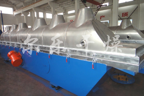 物料自進(jìn)料口進(jìn)入機內, 在振動(dòng)力作用下, 物料沿水平方向拋擲向前連續運動(dòng),熱風(fēng)向上穿過(guò)流化床同濕料換熱后, 濕空氣經(jīng)旋風(fēng)分離器除塵后由排風(fēng)口排出, 干燥物料由排料口排出。